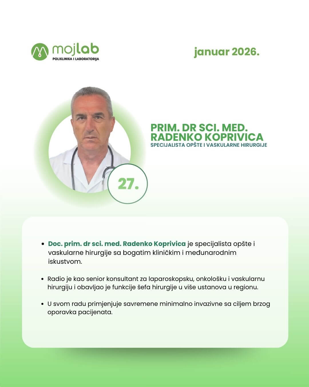Poliklinika „Moj Lab“, u cilju poboljšanja kvaliteta usluga, vrši mjerenje zadovoljstva korisnika. Molimo Vas da ogovorite na naša pitanja kako bi vašim primjedbama i predlozima pomogli da unaprijedimo naše usluge koje bi bilo na obostranu korist i zadovoljstvo.